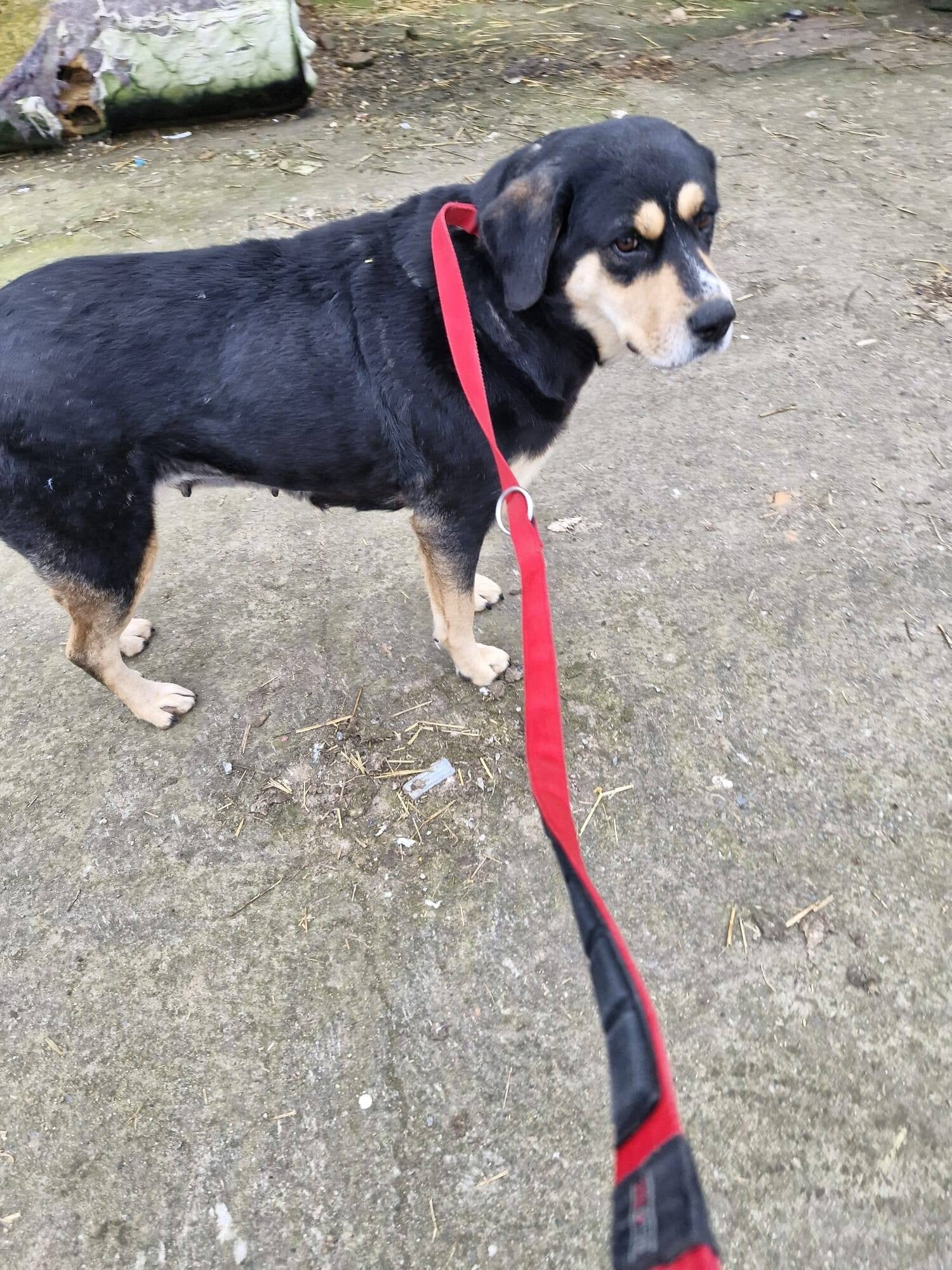 Im Tierheim zeigt sie sich von ihrer besten Seite: verträglich, ruhig, menschenbezogen und unglaublich verschmust. Sie liebt Nähe und genießt jede Streicheleinheit. An der Leine läuft Bessy bereits sehr gut, und auch auf der Straße hat sie keinerlei Aggression gegenüber Katzen gezeigt – ein friedliches Miteinander war möglich. Vermutlich trägt sie Sennenhund-Gene in sich: ihre Größe, die Färbung und ihr ausgeglichener, freundlicher Charakter sprechen dafür.